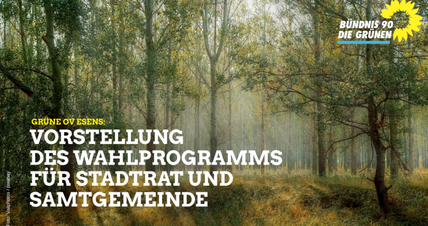 Stadtrat Wahlprogramm > https://gruene-wittmund.de/2021/04/30/gruene-esens-unser-wahlprogramm-fuer-die-stadt/ Samtgemeinderat Wahlprogramm > https://gruene-wittmund.de/2021/04/02/gruene-esens-wahlprogramm-fuer-die-samtgemeinde/